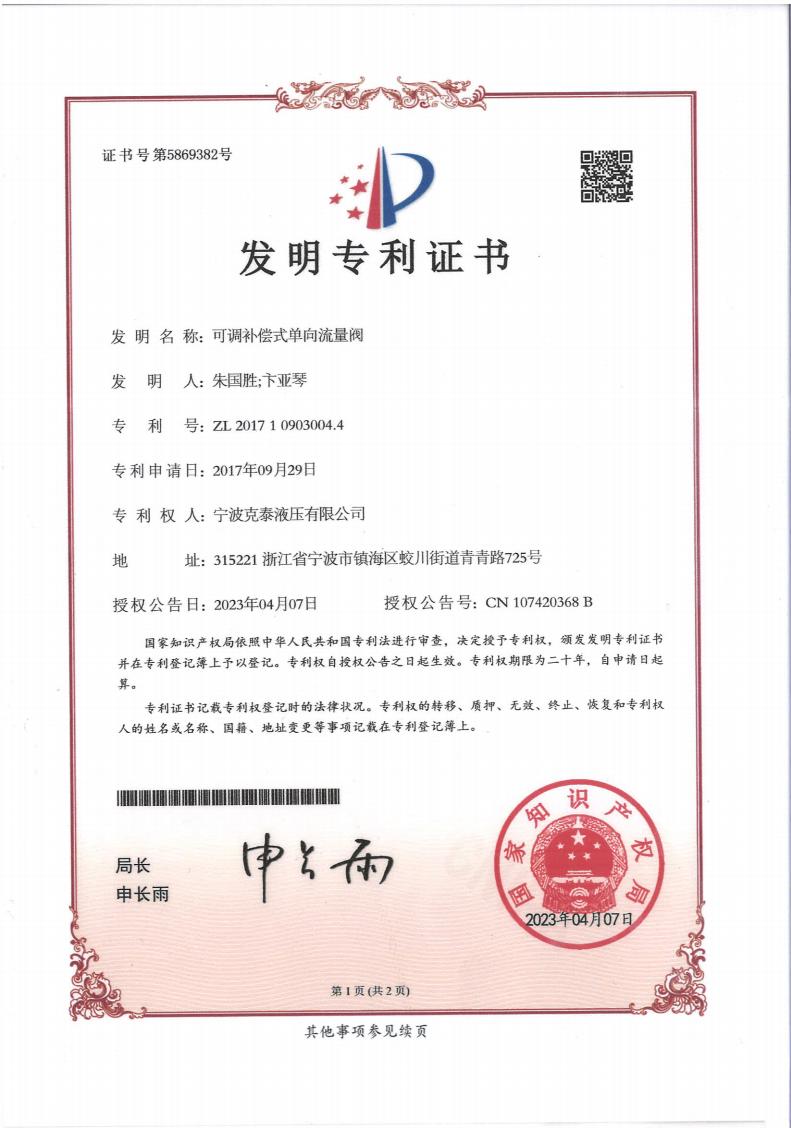 可调补偿式单向流量阀发明专利