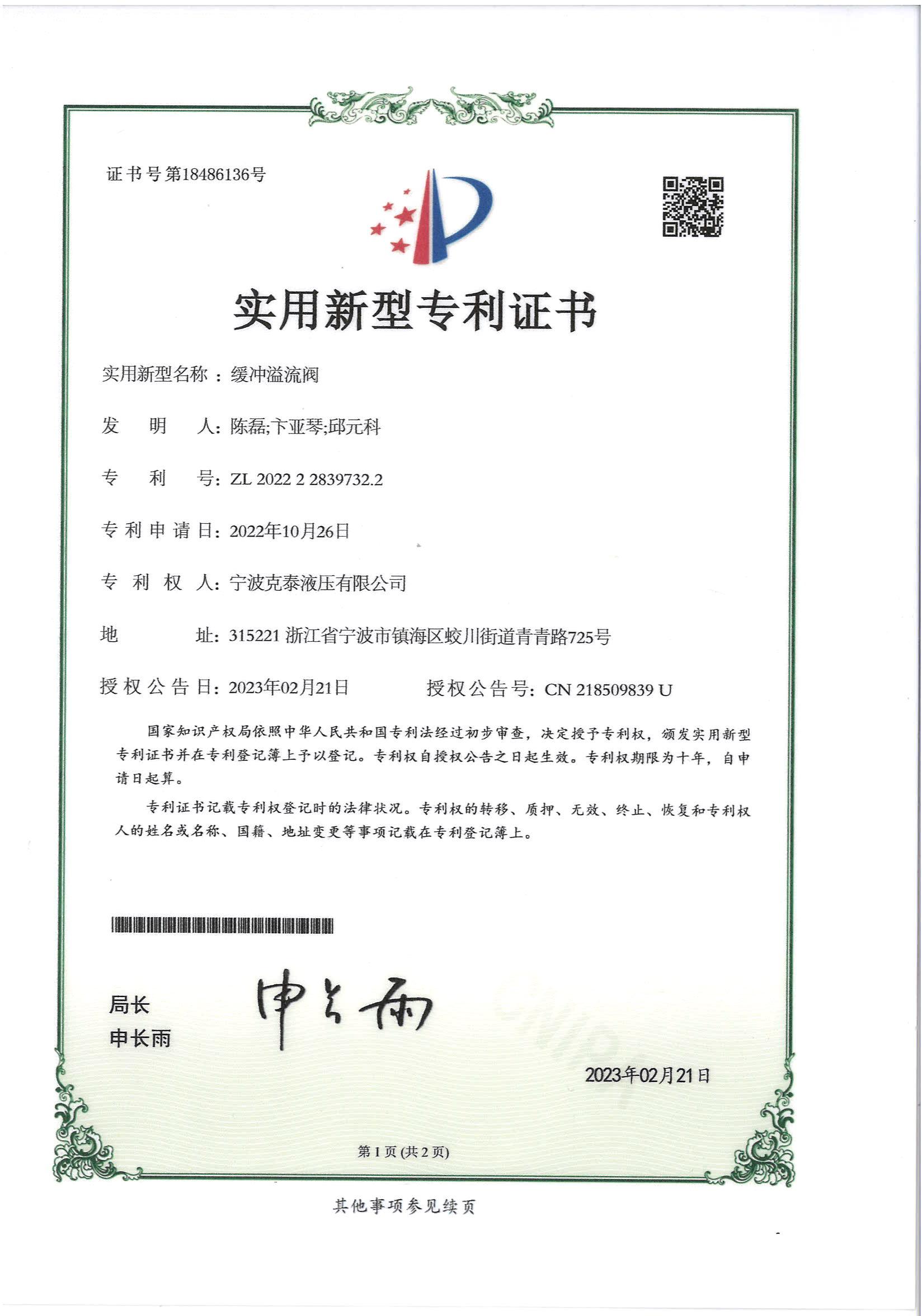 • 2023年缓冲溢流阀实用新型专利