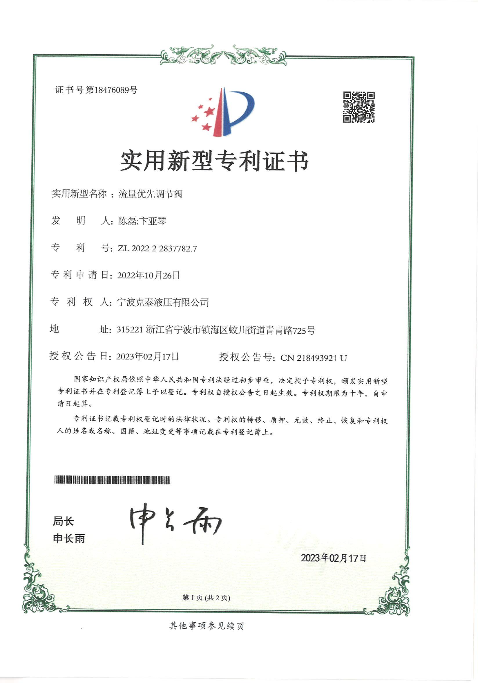 • 2023年流量优先调节阀实用新型专利