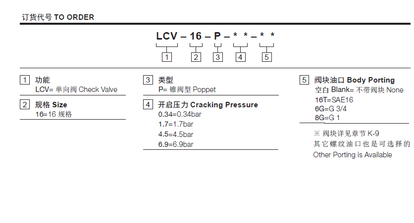 6.9=6.9bar温度-40°F to +250°F(-40°C to +120°C)阀块材料钢和球铁允许使用最大压力350bar -