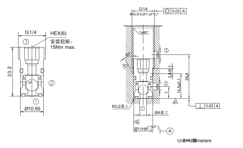 工作压力350Bar流量请查看《压力-流量曲线图》插孔见安装尺寸图过滤参考《油液清洁度》内泄漏5 drops/min(滴/分). max. at 350bar温度-40°F to +250°F(-40°C to +120°C)油液Mineral-based fluids with viscosities of 7.4 to 420 cSt.(矿物油粘度)阀块材料钢和球铁允许使用最大压力350Bar -