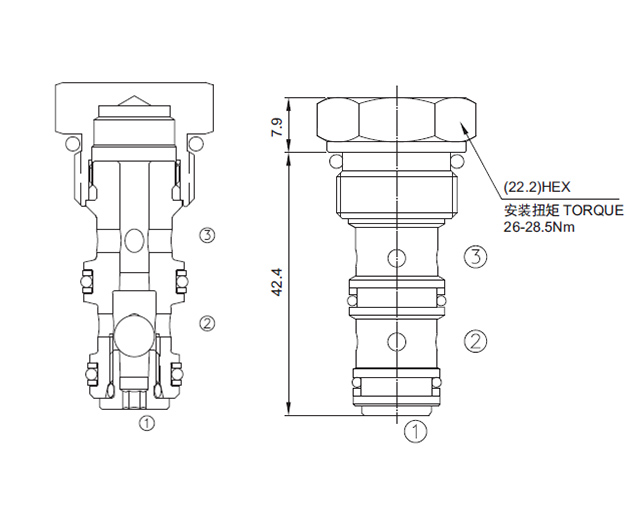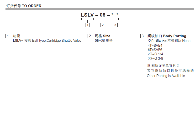 工作压力240Bar流量请查看《压力-流量曲线图》插孔08-3过滤参考《油液清洁度》内泄漏5 drops/min(滴/分). max. at 207bar温度-40°F to +250°F(-40°C to +120°C)油液Mineral-based fluids with viscosities of 7.4 to 420 cSt.(矿物油粘度)阀块材料6061-T6铝,允许使用最大压力207bar 钢和球铁允许使用最大压力350bar -