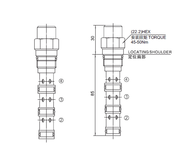 工作压力350Bar流量请查看《压力-流量曲线图》插孔SUN T-31A过滤参考《油液清洁度》温度-40°F to +250°F(-40°C to +120°C)油液Mineral-based fluids with viscosities of 7.4 to 420 cSt.(矿物油粘度)阀块材料钢和球铁允许使用最大压力350bar -
