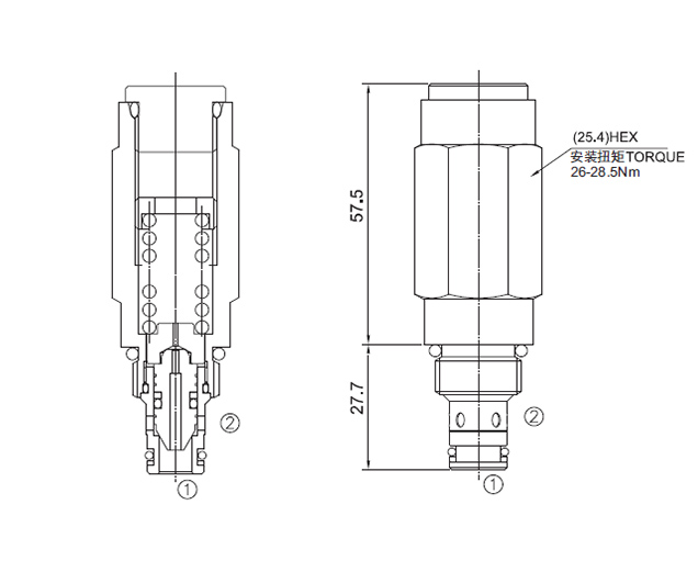 当②口压力达到设定压力时, 从②口到①口才打开,以保持系统压力不超过设定值。