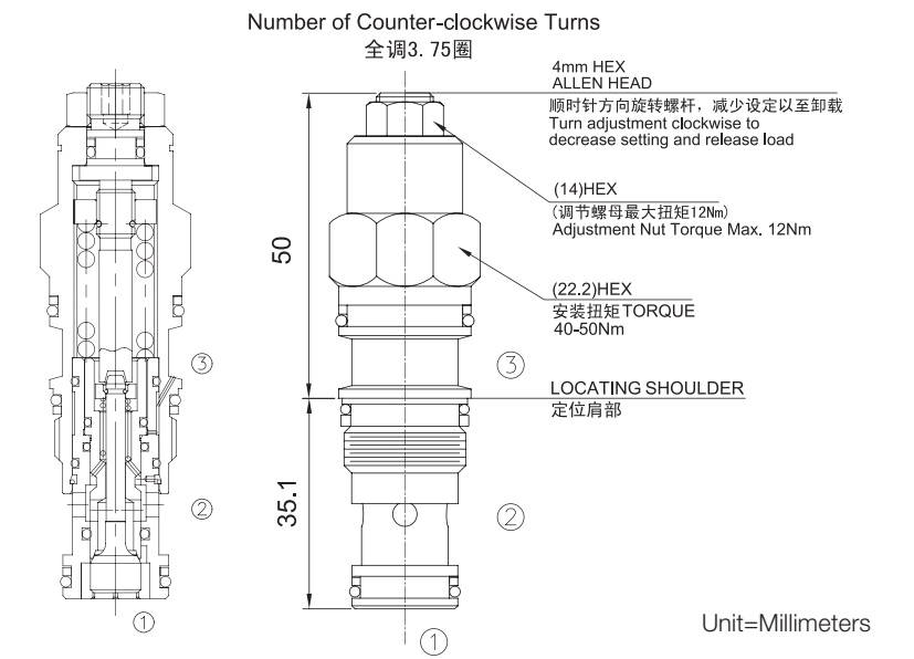 3、②口的背压按“控制比+1”的倍数加到溢流阀的设定值上即增加值=(1+ 控制比)× 压力值。