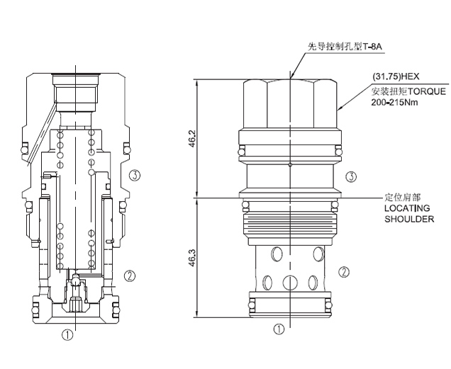 偏置下处于关闭状态且用①口或 ②口作为先导源。当安装在T-8A 插孔中的先导级二