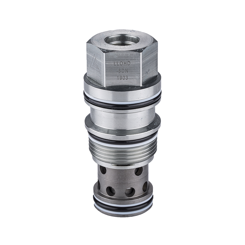 此阀为非平衡,外控开启,二通逻辑开关单元且带集成先导级控制插孔。此阀在弹簧