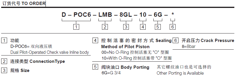 流量请查看《压力-流量曲线图》过滤参考《油液清洁度》最大工作压力350Bar单向阀开启压力8=8bar内泄漏3 drops/min(滴/分). max. at 350 bar控制比4:1温度-40°F to +250°F(-40°C to +120°C)油液Mineral-based fluids with viscosities of 7.4 to 420 cSt.(矿物油粘度)阀块材料钢和球铁允许使用最大压力350bar -
