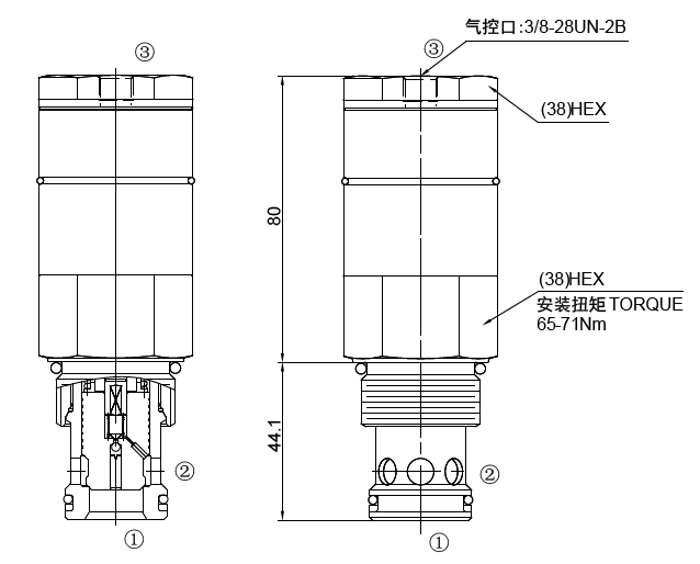 当③口不通气压时,①到②相当于单向阀,②到①关闭;
