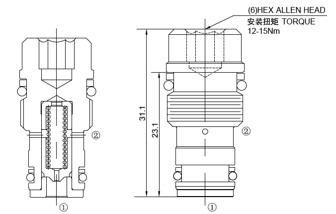 的流量。油液从②到①反方向流动,没有压力补偿。