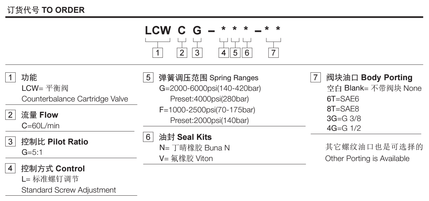 流量请查看《压力-流量曲线图》插孔SUN T-21A过滤参考《油液清洁度》最大设定值420bar最大负载320bar单向阀开启压力2.8bar内泄漏5 drops/min(滴/分)控制比5:1温度-40ºF to +250ºF (-40 ºC to +120 ºC)油液Mineral-based fluids with viscosities of 7.4 to 420 cSt.(矿物油粘度)阀块材料6061-T6铝,允许使用最大压力207Bar 钢和球铁允许使用最大压力350Bar