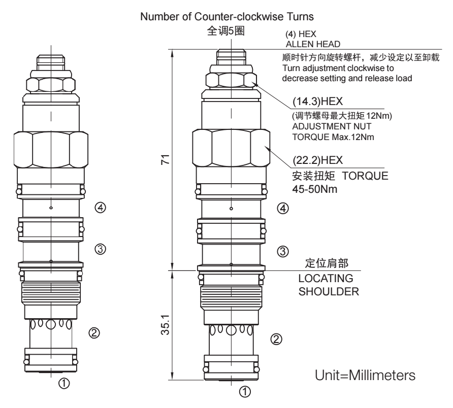 • 工厂的设定是指当溢流阀开启(流量为 30cc/min)时的压力。