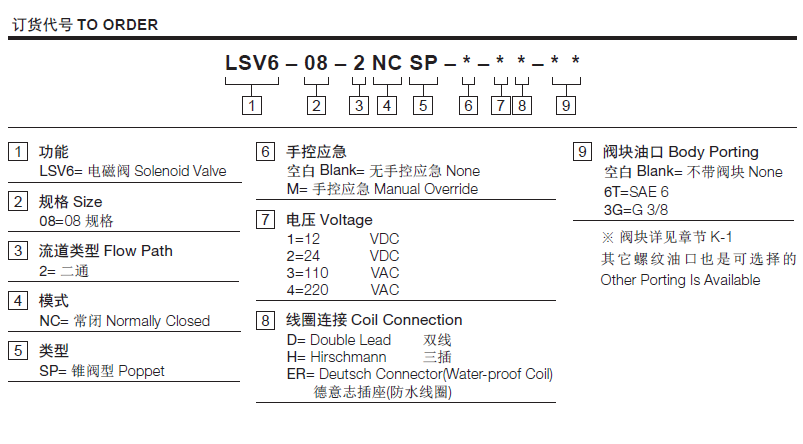 流量请查看《压力-流量曲线图》插孔08-2过滤参考《油液清洁度》最大工作压力350Bar内泄漏5drops/min.(滴/分) Max. at 350 bar温度-40°F to +212°F(-40°C to +100°C)线圈额定负载Continuous from 85% to 115% of nominal voltage(连续工作电压)油液Mineral-based fluids with viscosities of 7.4 to 420 cSt.(矿物油粘度)阀块材料钢和球铁允许使用最大压力350bar -