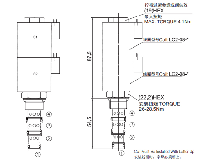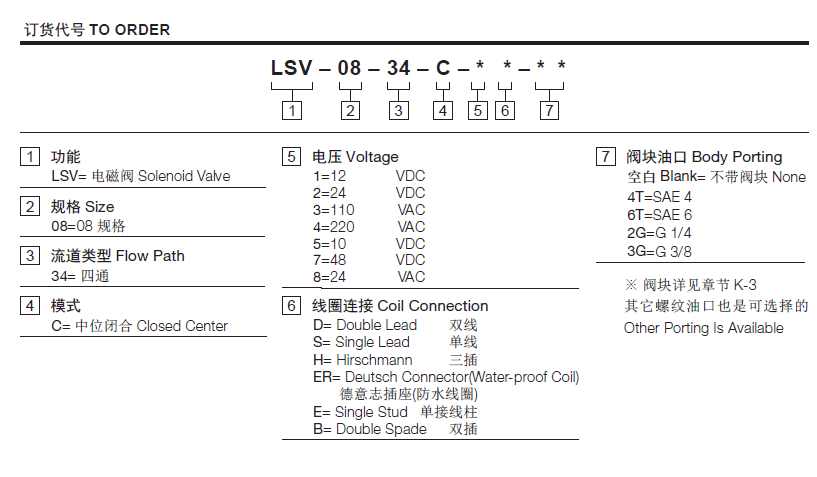 工作压力207Bar流量请查看《压力-流量曲线图》插孔08-4过滤参考《油液清洁度》内泄漏164cc/min.(毫升/分) max.温度-40°F to +212°F(-40°C to +100°C)线圈额定负载Continuous from 85% to 115% of nominal voltage(连续工作电压)油液Mineral-based fluids with viscosities of 7.4 to 420 cSt.(矿物油粘度)阀块材料6061-T6铝,允许使用最大压力207bar 钢和球铁允许使用最大压力350bar -