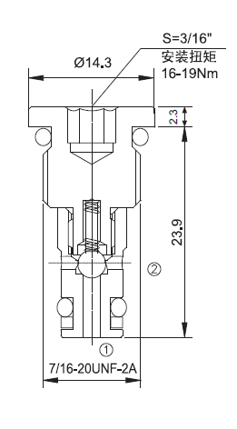 当在①口的压力超过开启压力,①到②开启;