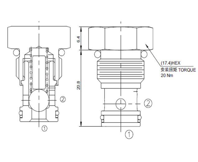 工作压力350Bar流量请查看《压力-流量曲线图》插孔HYDAC FC06-2过滤参考《油液清洁度》内泄漏2 drops/min(滴/分). max. at 350bar开启压力0.35=0.35bar温度-40°F to +250°F(-40°C to +120°C)油液Mineral-based fluids with viscosities of 7.4 to 420 cSt.(矿物油粘度)阀块材料钢和球铁允许使用最大压力350bar -