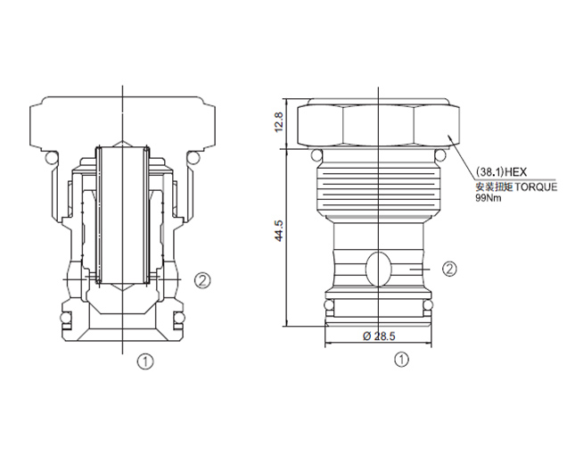 当在①口的压力超过开启压力,①到②开启;