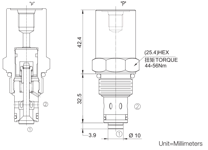 当在P 口所需的液压力达到①口负载的1/3 时,阀芯打开,①和②通,液控比为3:1。