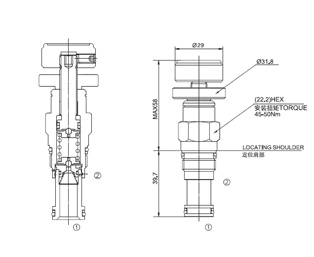 温度-40°F to +250°F(-40°C to +120°C)油液Mineral-based fluids with viscosities of 7.4 to 420 cSt.(矿物油粘度)阀块材料钢和球铁允许使用最大压力350bar -