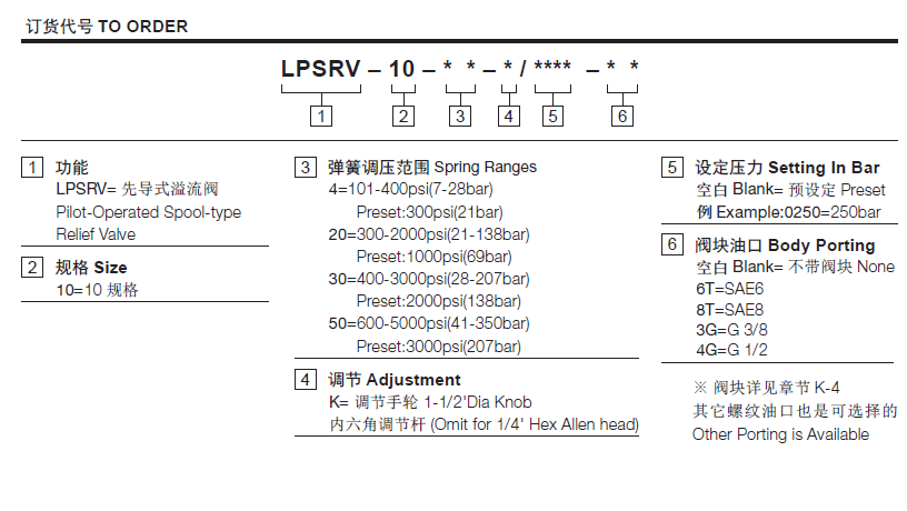 阀体①口和②口不通, 直到①口压力超过设定压力且打开先导阀芯。这样, 先导阀芯