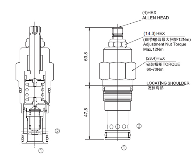 流量200 L/min.插孔SUN T-3A过滤参考《油液清洁度》最大工作压力350Bar内泄漏50 cc/min. at 70 bar响应时间10 ms弹簧调压范围A 7 to 210 bar, preset预设定:70bar
