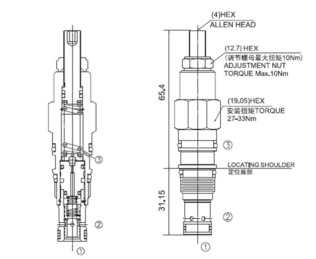 油口③的压力按1:1 叠加到阀的设定值上,且油口3 的压力不应超过315 bar。所有弹