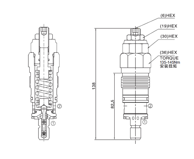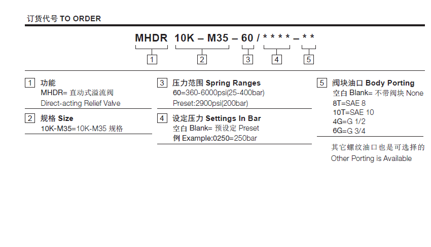 当①口压力达到设定压力时, 从①口到②口打开,以防止系统过载。②口的背压叠加