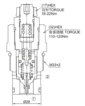 工程机械用,先导溢流阀带反向单向阀功能 ( 补油开启压力2bar)