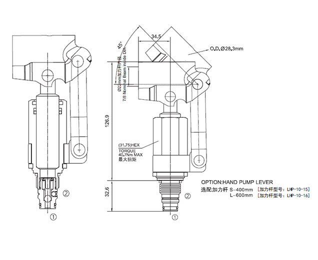 工作压力207Bar流量请查看《压力-流量曲线图》插孔10-2过滤参考《油液清洁度》排量LHP-10: 8.8 cc per stroke