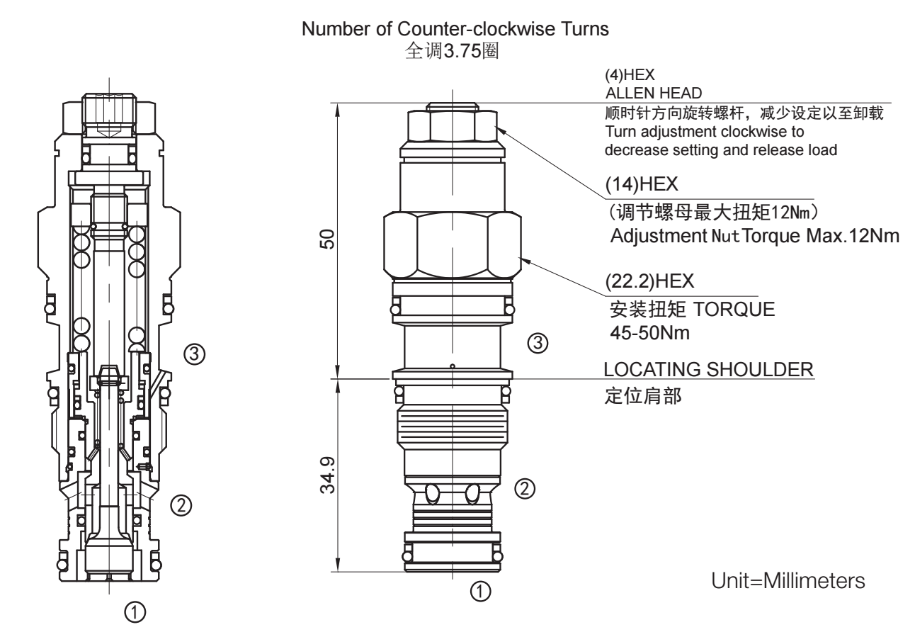 • 工厂的设定是指当溢流阀开启(流量为 30cc/min)时的压力。