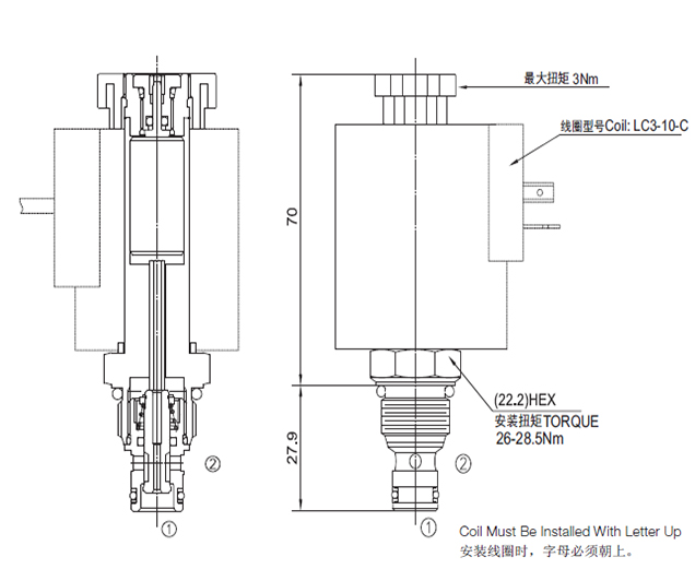 失电时,此阀截止油液双向流动;