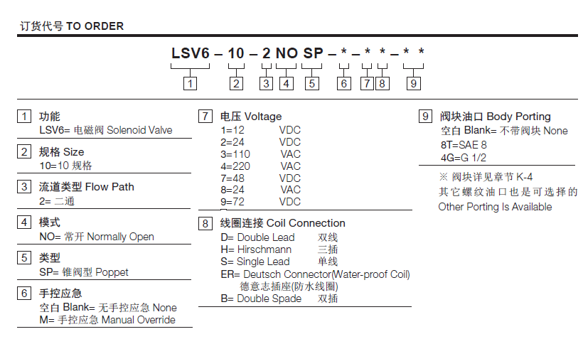 流量请查看《压力-流量曲线图》插孔10-2过滤参考《油液清洁度》最大工作压力350Bar内泄漏5drops/min.(滴/分) max. at 350 bar温度-40°F to +212°F(-40°C to +100°C)线圈额定负载Continuous from 85% to 115% of nominal voltage(连续工作电压)阀块材料钢和球铁允许使用最大压力350bar -