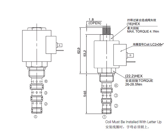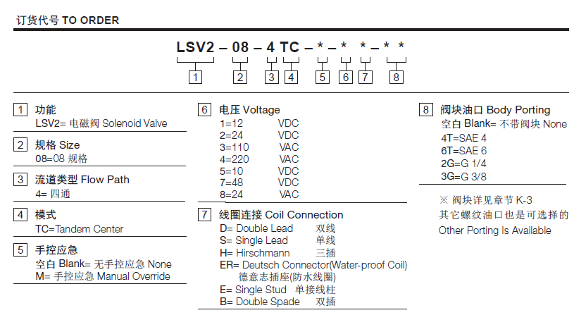 插孔08-4过滤参考《油液清洁度》内泄漏82cc/min.(毫升/分) max. at 207bar温度-40°F to +212°F(-40°C to +100°C)线圈额定负载Continuous from 85% to 115% of nominal voltage(连续工作电压)油液Mineral-based fluids with viscosities of 7.4 to 420 cSt.(矿物油粘度)阀块材料6061-T6铝,允许使用最大压力207bar 钢和球铁允许使用最大压力350bar -